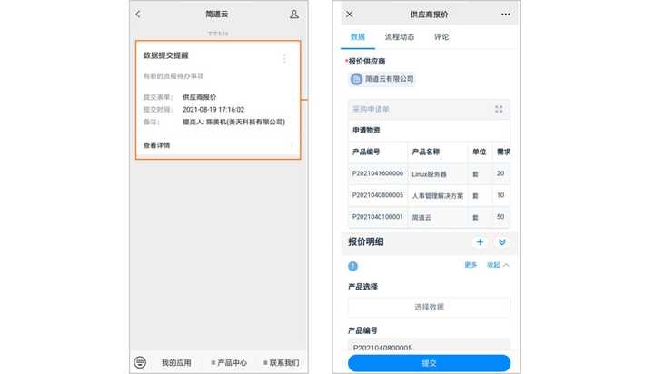 目前有一種新型的(de)采購合作方式是(shi)將供(gong)應(ying)商(shang)加入到自(zi)己的(de)外(wai)部通訊錄里(li),像管理企業(ye)內各部門(men)之間的(de)業(ye)務(wu)協(xie)作那(nei)樣和外(wai)部供(gong)應(ying)商(shang)開展協(xie)作。企業(ye)可以快速連接供(gong)應(ying)商(shang)并給每個供(gong)應(ying)商(shang)設置(zhi)對應(ying)的(de)權限,讓他(ta)們也(ye)能填報(bao)數據(ju)、審(shen)批流(liu)程、查(cha)看(kan)報(bao)表,真(zhen)正參與到業(ye)務(wu)流(liu)程中。