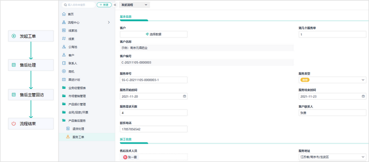 ② 服務工單:客戶方需要現場測試、安裝、演示等服務時,銷售可以在系統中錄入服務工單,記錄工作任務量。