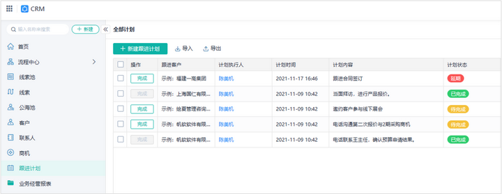 ② 客戶跟進:銷售可以在客戶信息表中快速添加客戶跟進計劃與記錄,通過日程提醒可以看到需要跟進的客戶;