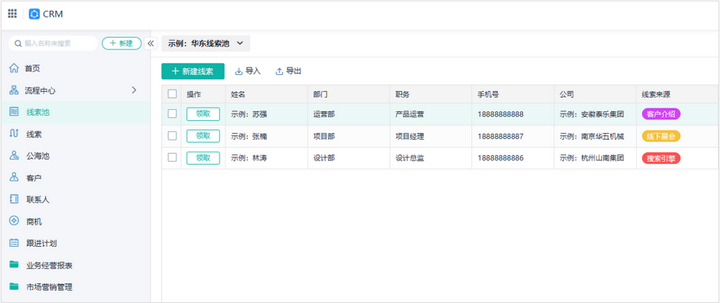 ② 線索領取:每個銷售可以從線索池批量領取線索;