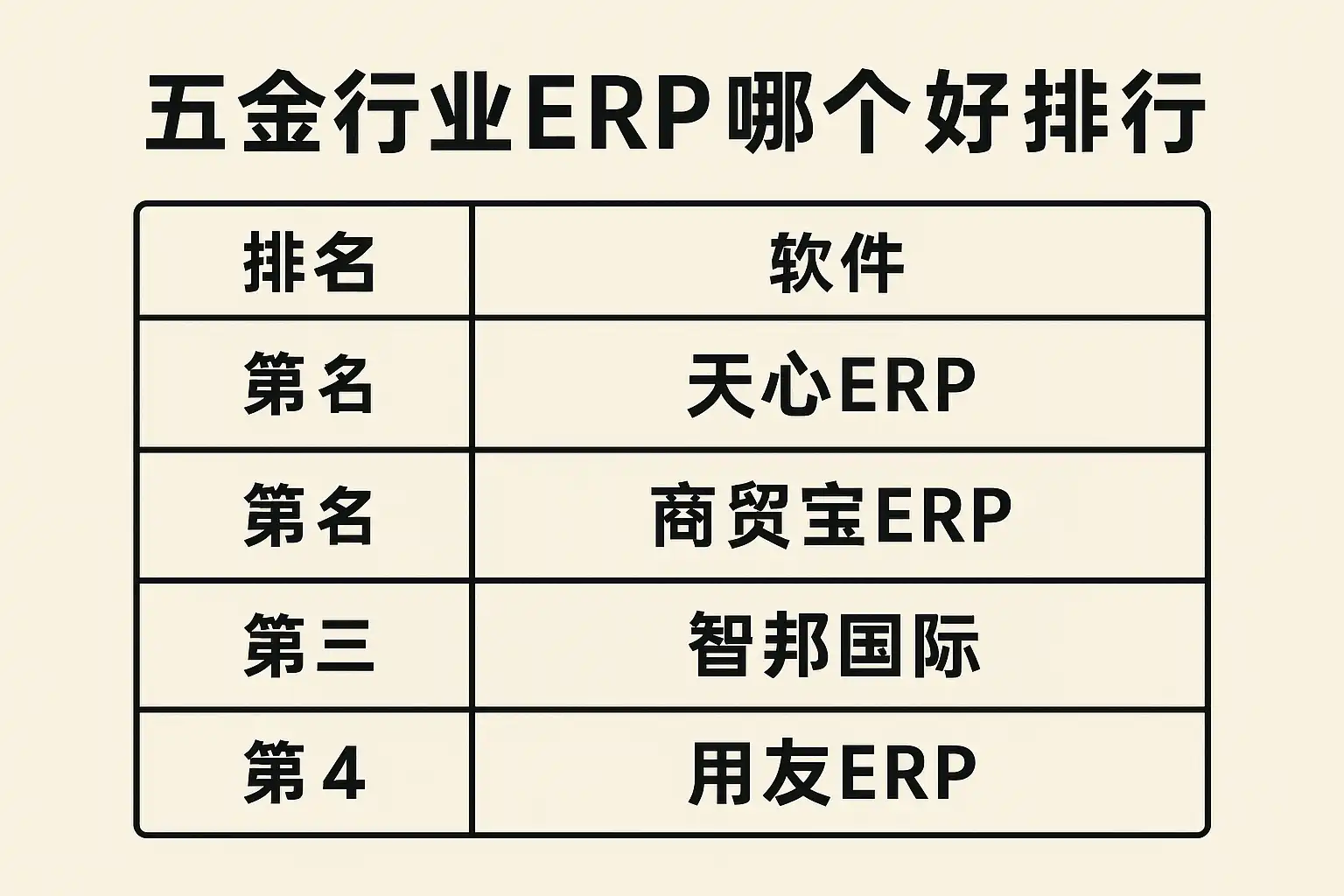 在(zai)選擇適合(he)(he)的五(wu)金(jin)行業(ye)ERP時,需要綜合(he)(he)考慮功能覆蓋度、易用(yong)性、價格及服務支持(chi)等因素。以下是目前市(shi)面上主流的幾款ERP系統在(zai)五(wu)金(jin)行業(ye)中的應用(yong)排名與對比: